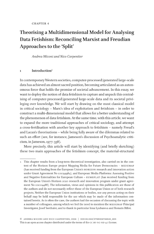 | Theorising a Multidimensional Model for Analysing Data Fetishism: Reconciling Marxist and Freudian Approaches to the 'Split', with Andrea Miconi, in Paško Bilić