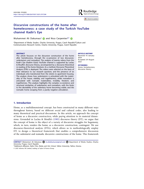 | Discourse-theoretical perspectives on class, populism and participation. An interview with Nico Carpentier, with Yiannis Mylonas, Communications. Media. Design, 5(1): 201-221.